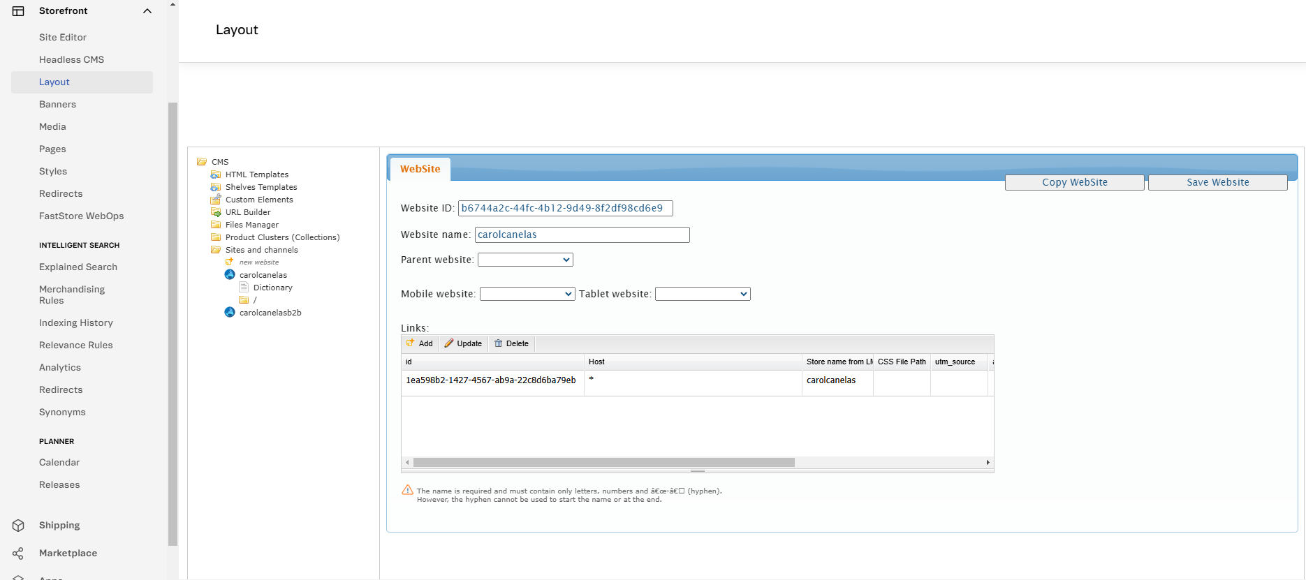Layout - Sites and channels