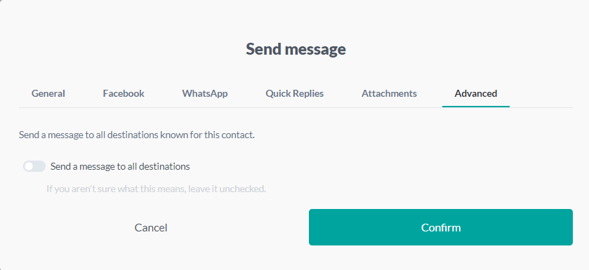 The ""Advanced"" option (Advanced Settings) allows you to enable message delivery to all destinations, meaning the message will be sent to all channels the contact is linked to, not just the preferred channel. After that, the channel chosen by the user to reply will become the new preferred channel for that conversation.