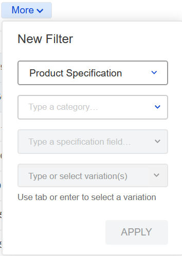 There are many filters that can be selected to reduce the number of products displayed on the list.