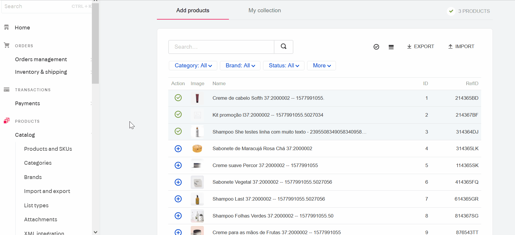 Selecting products through the VTEX Admin can be made using the product list, search bar and filters. You can search for a product using these parameters: