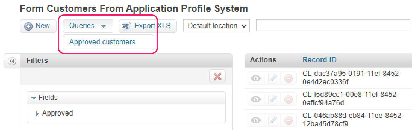To set a form to always open the list with a custom query instead of displaying all the records, you can configure a default query. To do this, follow the steps below: