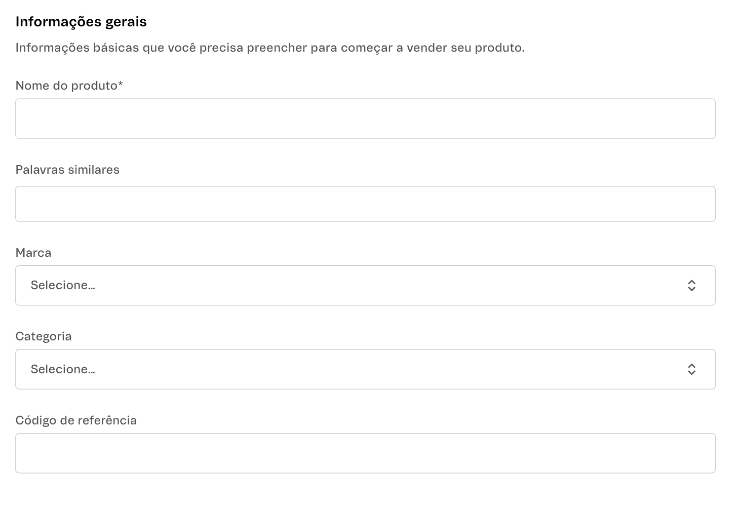 Reference code: Enter the product's unique reference code to improve your store management. Example: TXU1234.