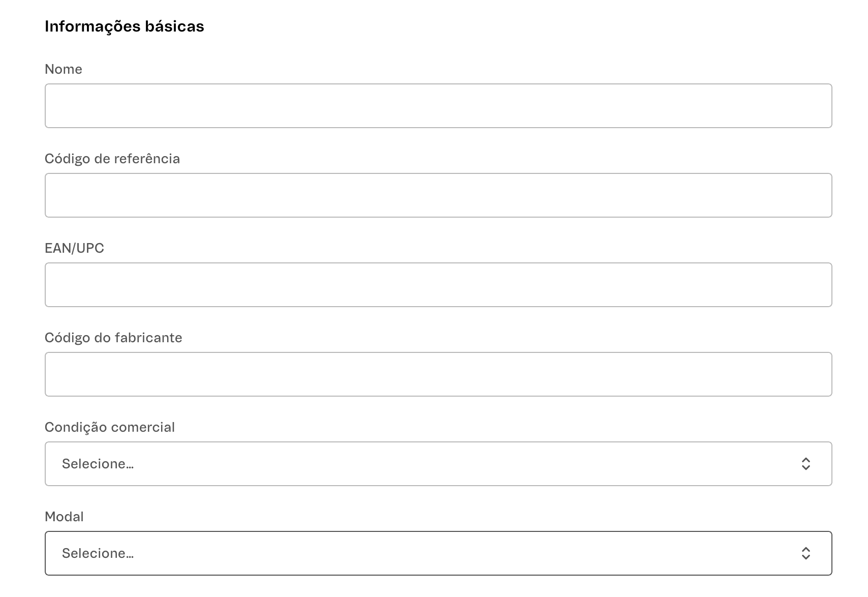 - EAN/UPC: Field that must have the barcode information. Required field if the Reference code field is empty.