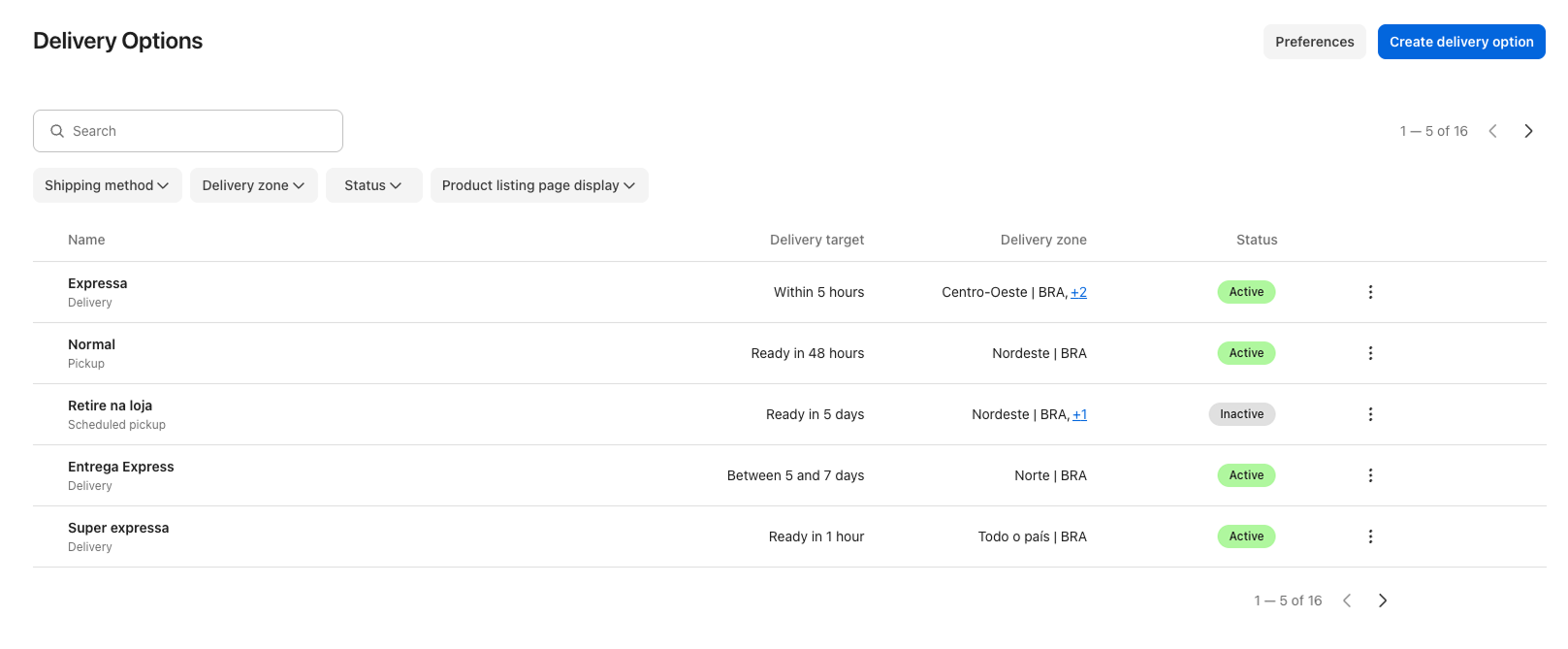 Delivery Options is a page in the VTEX Admin that allows you to configure flexible and accurate delivery options during the buying journey, such as defining different types of delivery availability and geographic zones, and controlling how and when these options are displayed to the customer.