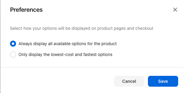 - Only display the lowest-cost and fastest options: Only the delivery options with the lowest cost or shortest time will be displayed on the product page and checkout.