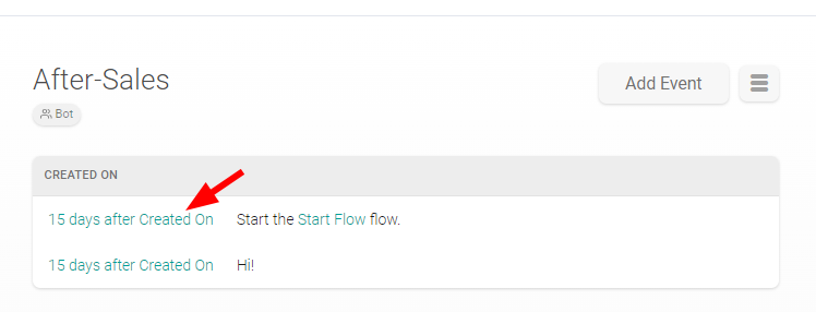To edit when a message or flow will be sent, choose a different flow, or change the action from ""Send a message"" to ""Start a flow"" (and vice versa):