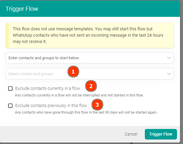 - Decide if a contact is already active in some other flow, that flow will be interrupted or not;