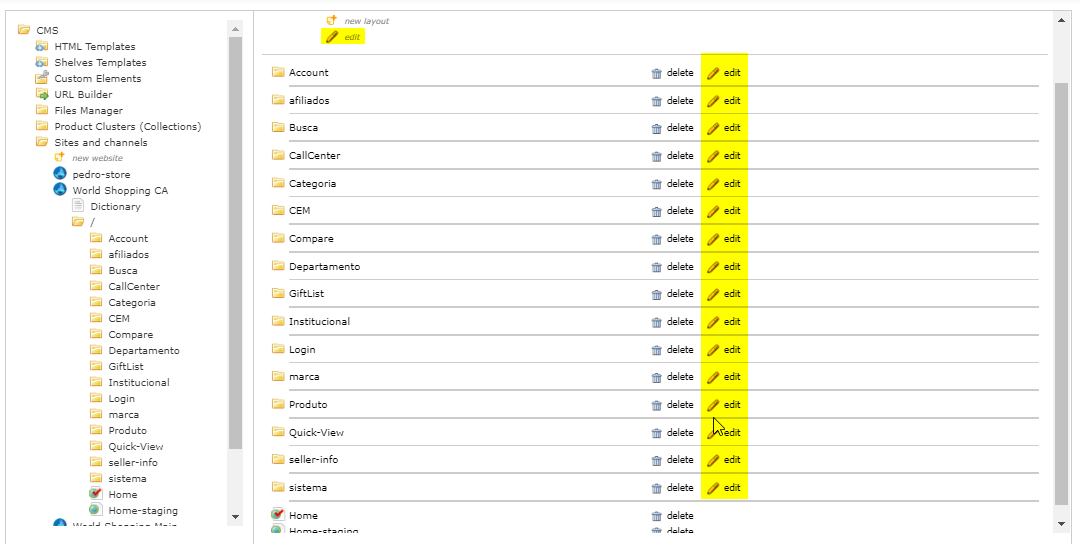 - In the VTEX Admin, access Storefront > Layout and open the folder CMS.