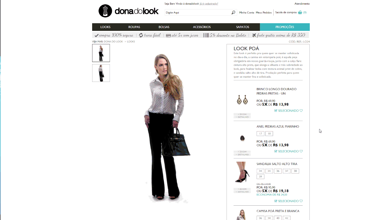 In the layout above, it is possible to choose the Outfit items the customer would like to buy and then click on “Comprar Produtos Selecionados”.