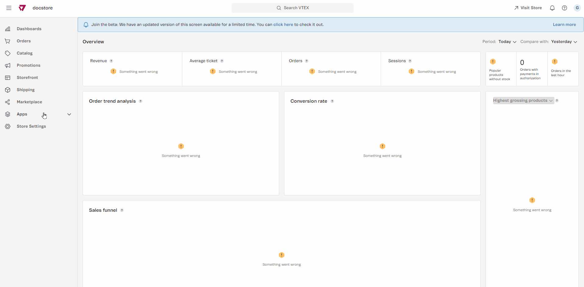 To access a buyer organization in the VTEX Admin, go to Apps > B2B Organizations and Cost Centers > Organizations, or type Organizations in the search bar at the top of the page.