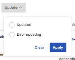 To filter the offers by Update, click the down arrow, select one of the options, and then click Apply.