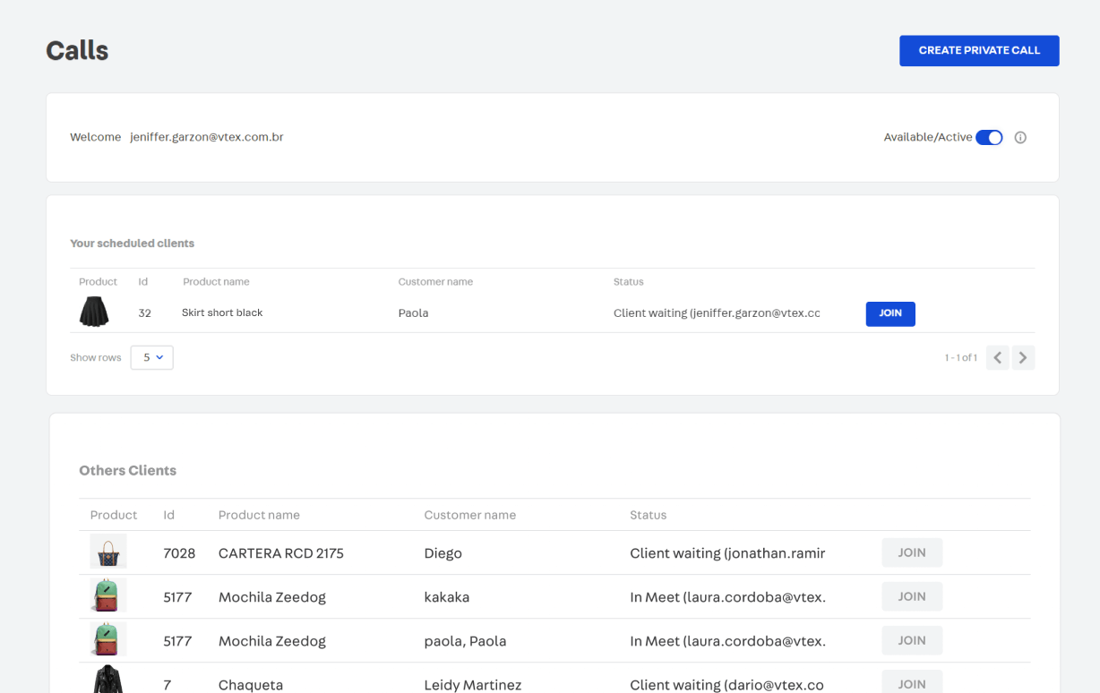 - Search by product, customer, personal, etc.: Search for specific calls based on product, customer, personal shopper, or other relevant criteria.