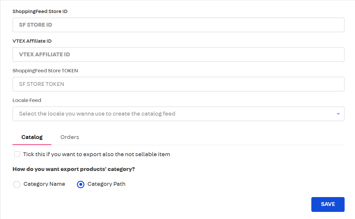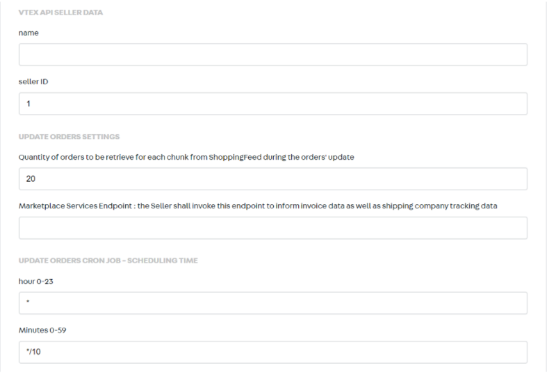 - VTEX Affiliate ID: The ID of the VTEX Affiliate will be used as a prefix for the imported orders from Shopping Feed and created in VTEX.