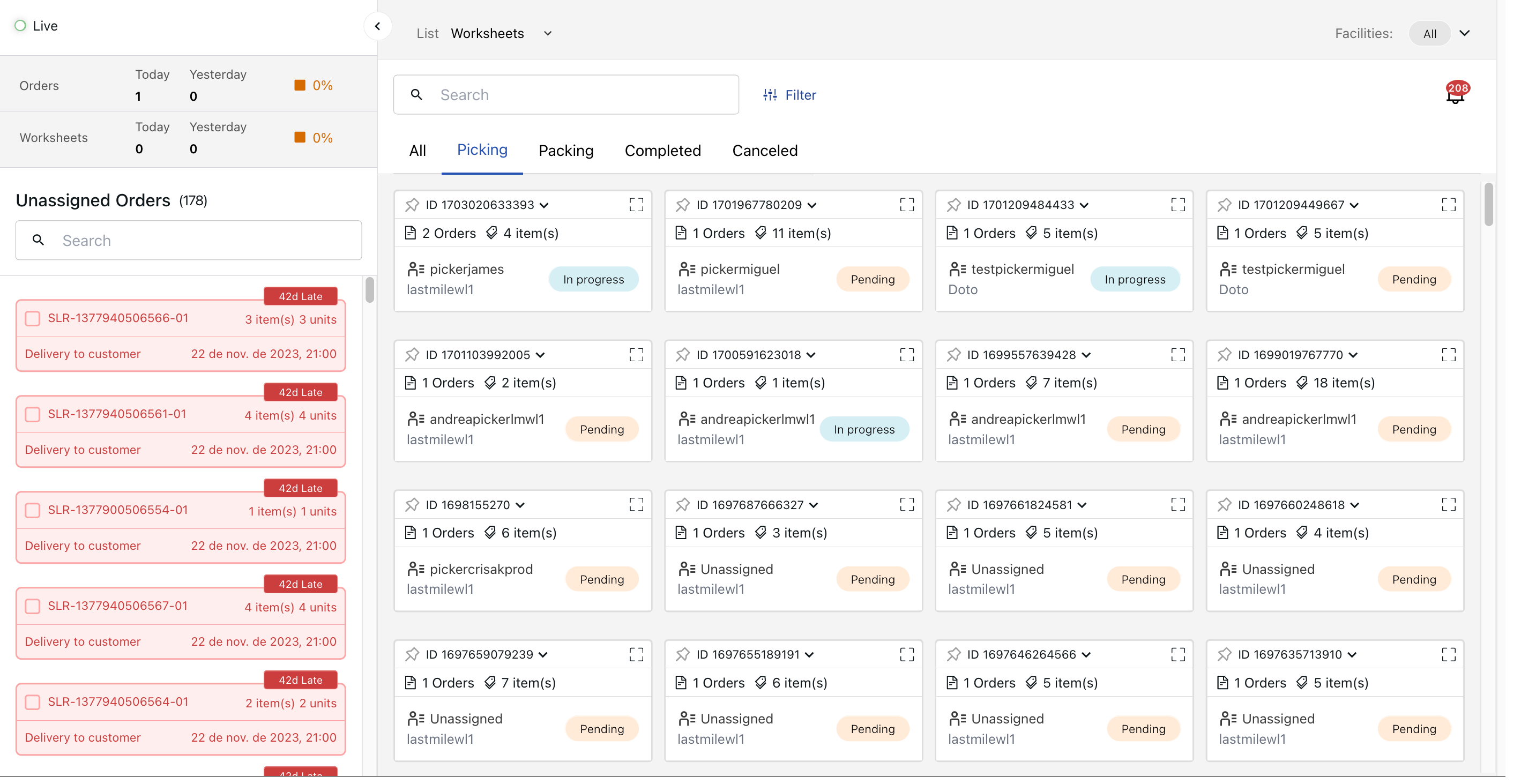 - Picking: Worksheets in which the picking is in progress.