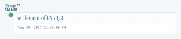 The date and time of settlement of a payment can be viewed in the transaction timeline.