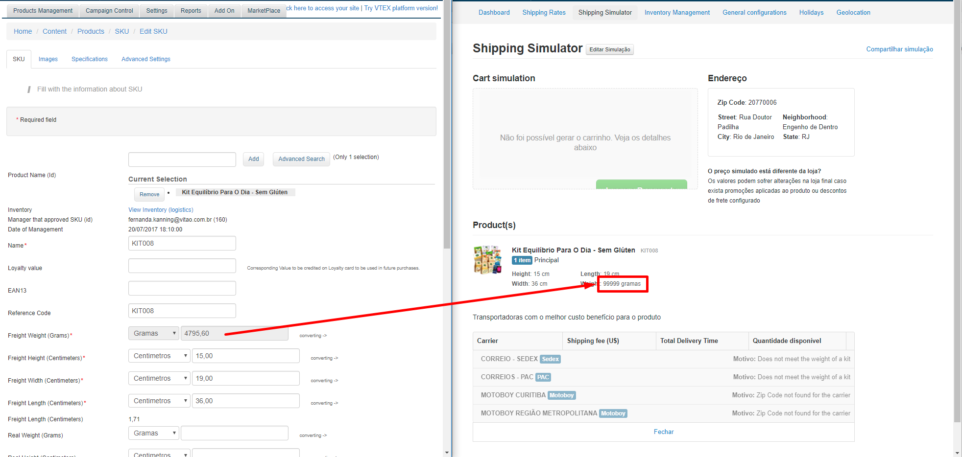 To overcome this behavior, as soon as you notice this divergence, access the SKU KIT (Parent) through admin and click on the save button (either by applying changes or not). The same process can be done by spreadsheet. After this step, wait a few moment for the indexation to finish.