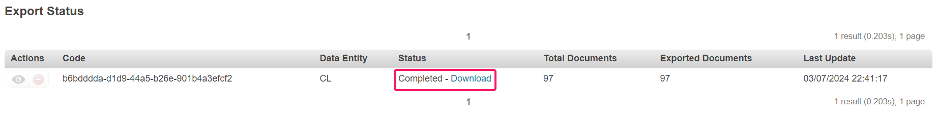 If the Status is Running, wait for the export to complete and then repeat the steps.