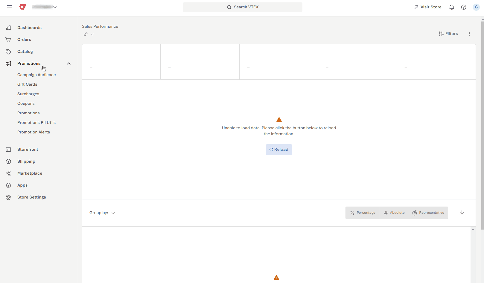 1. In the VTEX Admin, go to Promotions > Promotions, or type Promotions in the search bar at the top of the page.