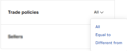• Different from: Select the trade policies you want to exclude from the promotion. This option removes specific policies, ensuring the discount is not applied to products that follow them.