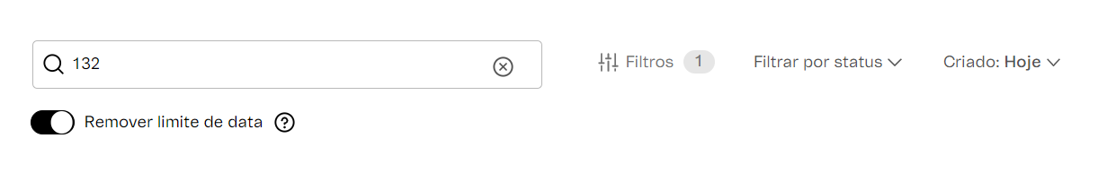 A busca em todos os pedidos não pode ser associada a outros filtros. Ou seja, ao remover o limite de datas da busca, qualquer filtro ativo se torna inativo. Se o termo da busca é removido ou o switch de busca em todos os pedidos é desativado, os filtros anteriormente configurados se tornam ativos novamente.