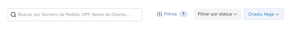 Por padrão, a página Todos os pedidos vem com o filtro de pedidos criados Hoje ativado. Para buscar em outras datas, use os filtros descritos em Filtros: Datas e em Criado.