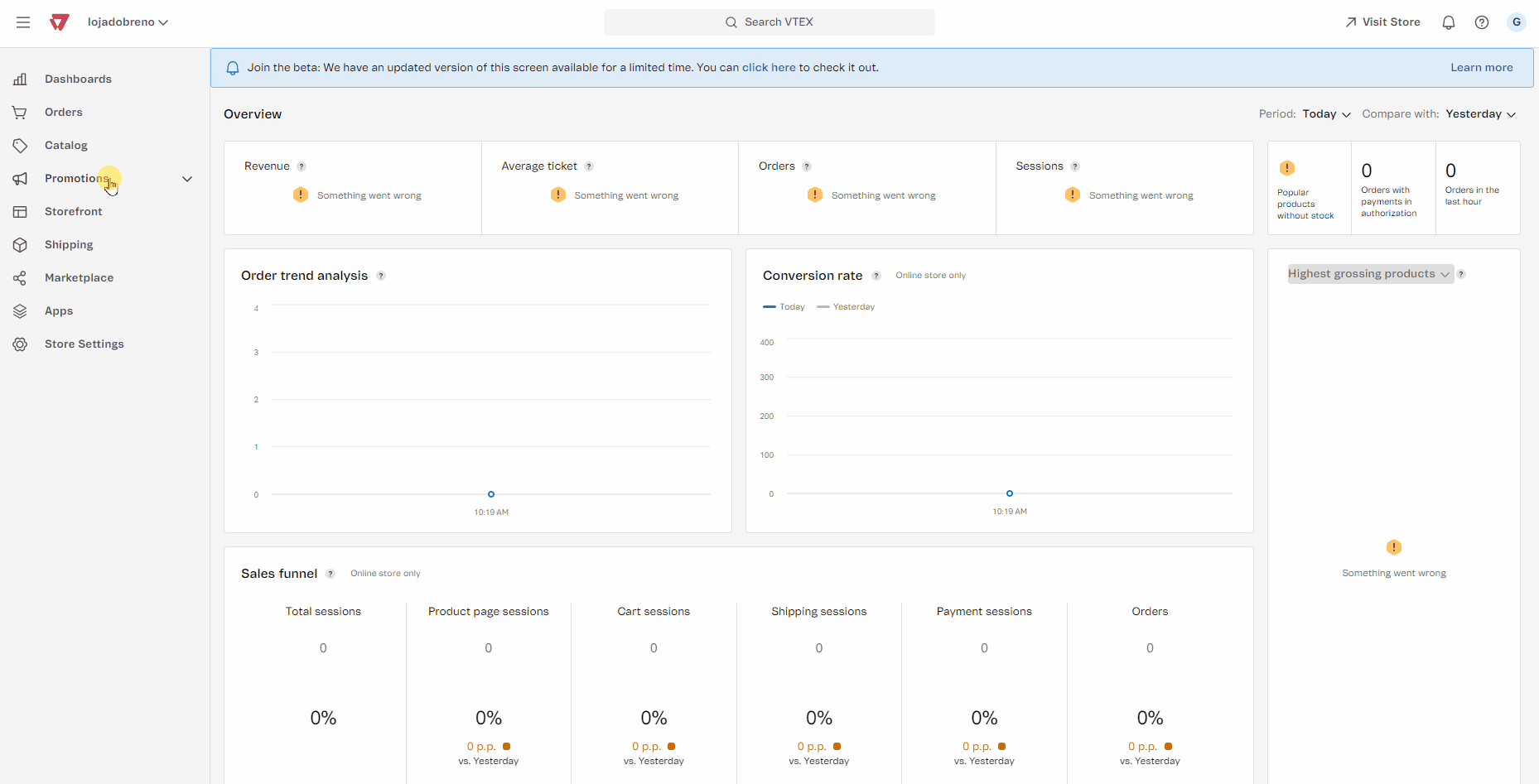 - In the VTEX Admin, go to Promotions > Promotions, or type Promotions in the search bar at the top of the page.