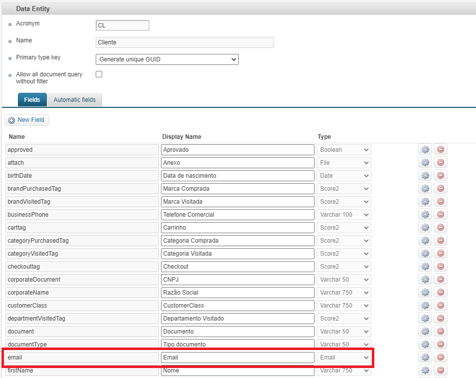 For example, if you want to create a cluster with only customers whose emails contain @test.com, the configuration will follow the example below.