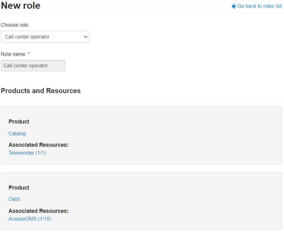 For example, the Call center operator profile has a Catalog product resource that allows operations to be carried out in a store on behalf of a customer and an OMS resource that allows verifying an order status: