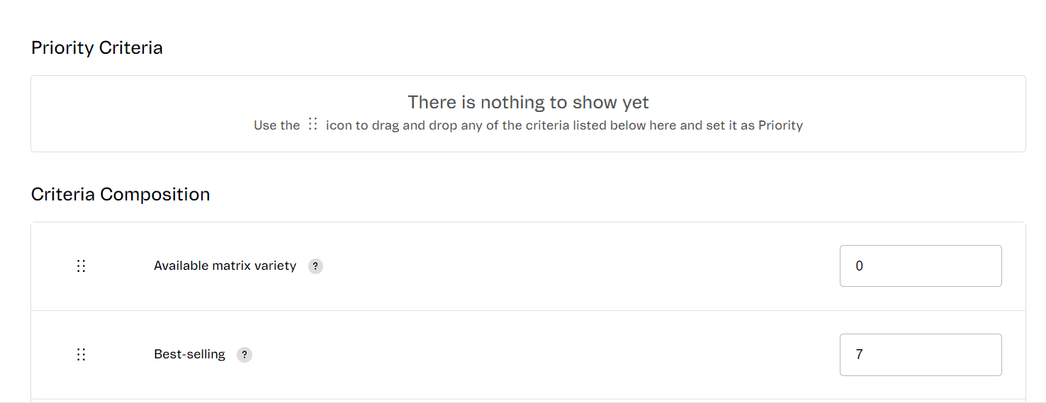 If you want to use priority criteria, place the most relevant one first, as the ranking will always be based on it. The first priority criterion has more weight than the others, so it can neutralize the other priority criteria and the criteria composition. In case of a tie, the other criteria will be considered to determine the final ranking of the results (the other priorities will be first, followed by the criteria composition).