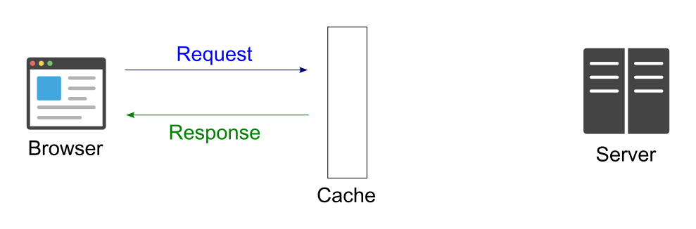 The cache is represented by a layer between the browser and server. So when a request is made, instead of the system going straight to the server to find the information, it first goes to this layer, which makes the response much quicker. A schematic diagram is shown below: