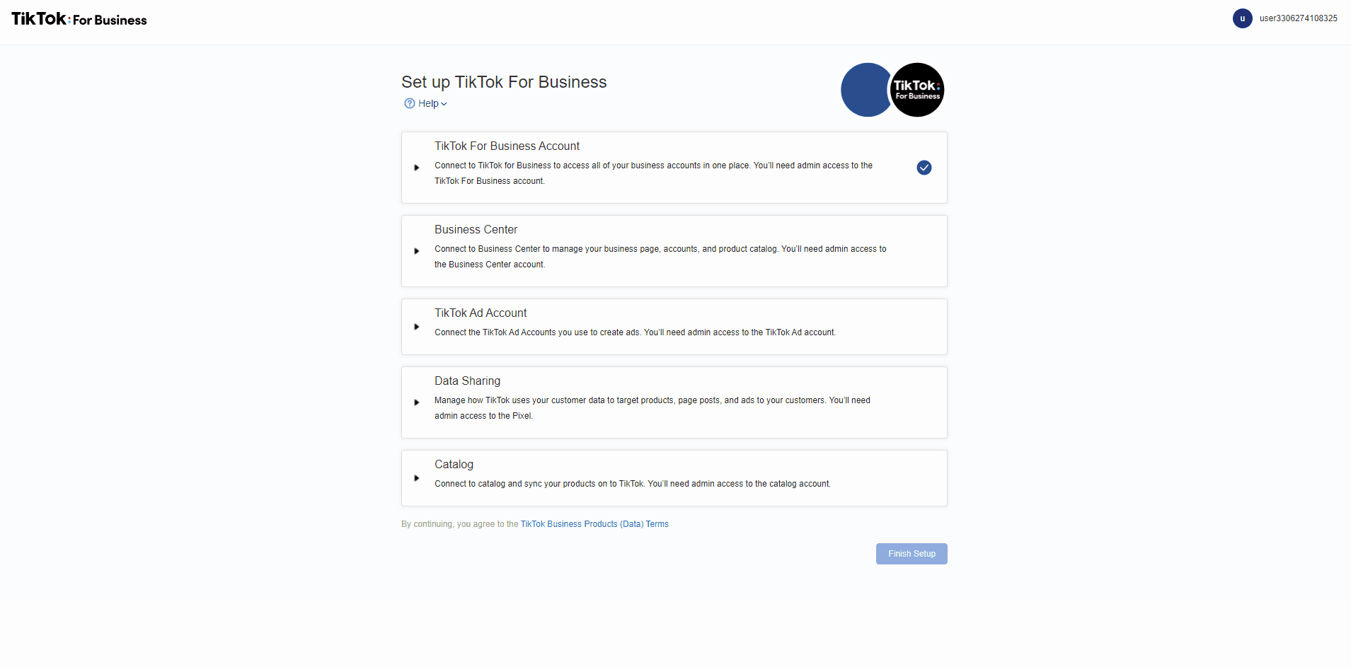 - Haz clic en la sección TikTok for Business Account y verifica que tu cuenta esté en la lista.
