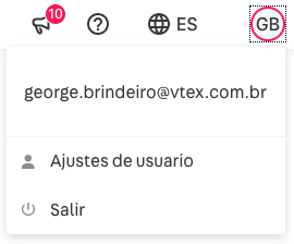 - Acceda a su configuración de usuario, haciendo clic en el círculo con sus iniciales en el lado superior derecho del Admin.