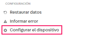 - En el menú principal de inStore, en la sección Configuración, haz clic en la opción Configurar el dispositivo, ilustrada a continuación.