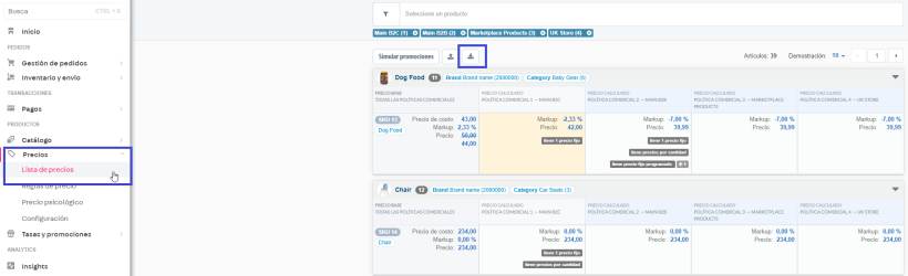 Cómo incluir metadatos al exportar plantilla de precios