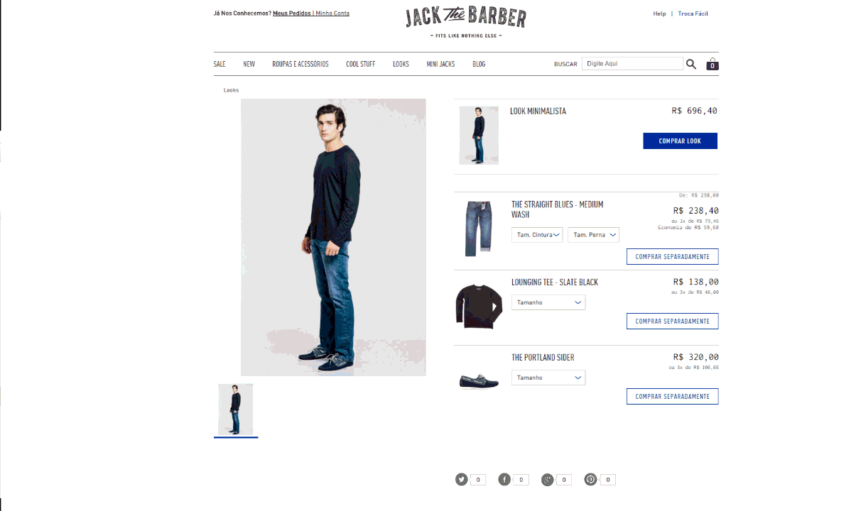 En el layout arriba se pueden seleccionar los ítems del kit de look que el cliente quisiera comprar y luego hacer clic en “Comprar Produtos Selecionados”.