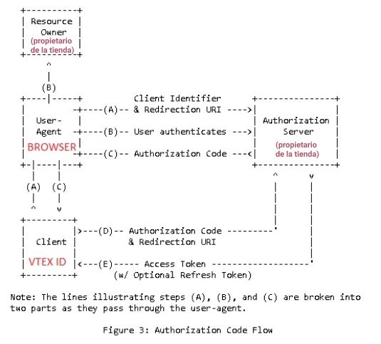 Cuando el usuario regrese a la URL de retorno, VTEX ID capturará el código de autorización para, a partir de los servidores de backend (fuera del browser del cliente), obtener un código de acceso.