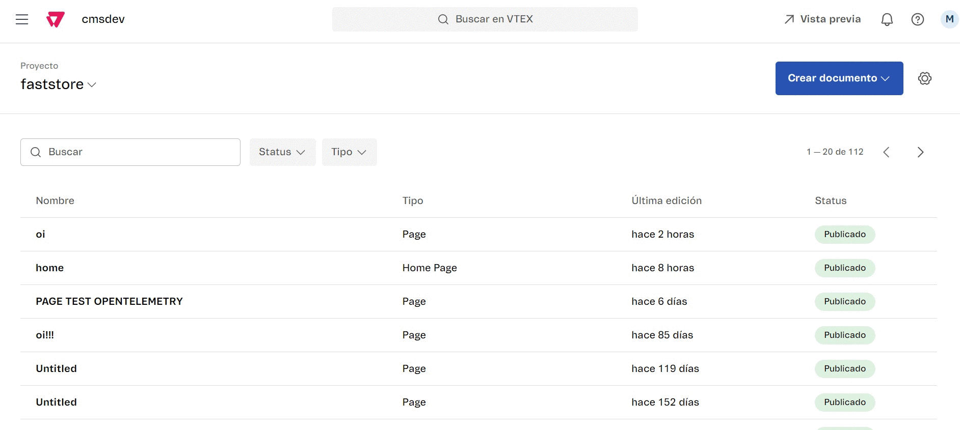 Para acceder a Proyectos, en el Admin VTEX ve a Storefront > Headless CMS.