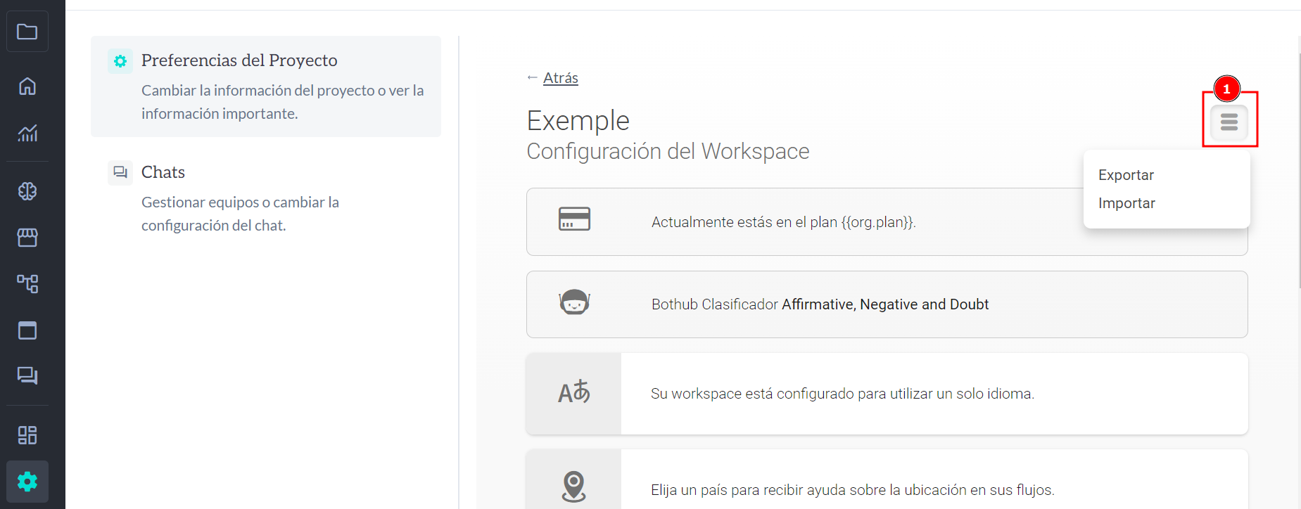 - Segundo Camino: A través de Configuraciones Generales de la Organización Para acceder a la página de exportación desde las configuraciones generales de la organización, simplemente ve al menú de opciones y haz clic en el botón ""Exportar"".