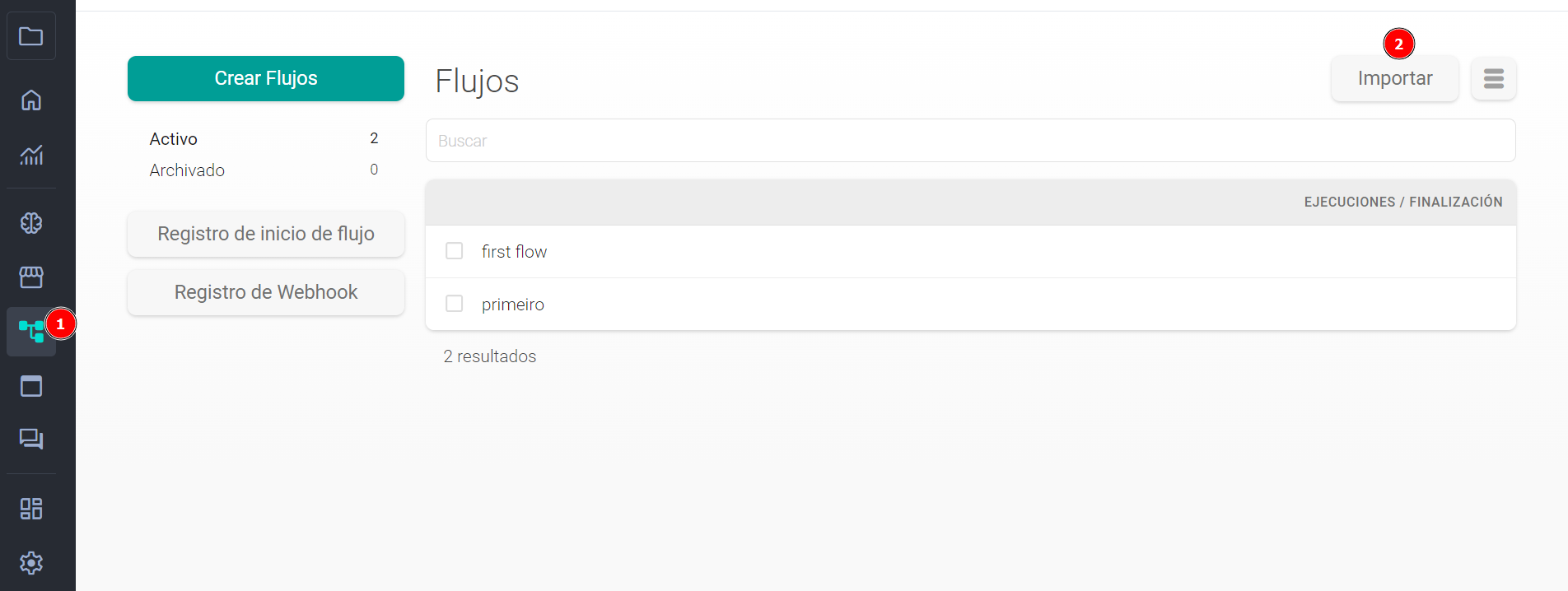 Para acceder a la página de importación de flujos, simplemente ve al menú de opciones y haz clic en el botón ""Importar"" en el módulo de Flujos.