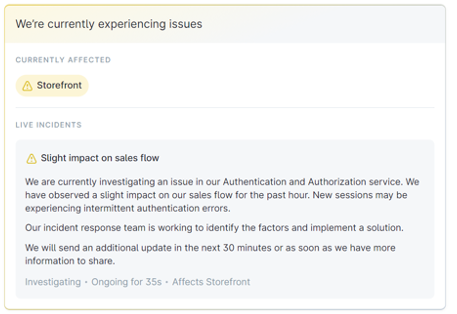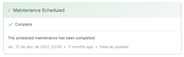En situaciones en que la estabilidad de la plataforma se vea afectada, empleamos la página de status de VTEX para comunicar todos los detalles: fecha de ejecución del mantenimiento, duración e impacto.