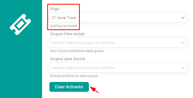 Es importante recordar eliminar el contacto de este grupo cuando la sesión de atención humana haya finalizado. Para ello, existe un tipo de disparador específico: 'Inicie un flujo después de cerrar un ticket'.
