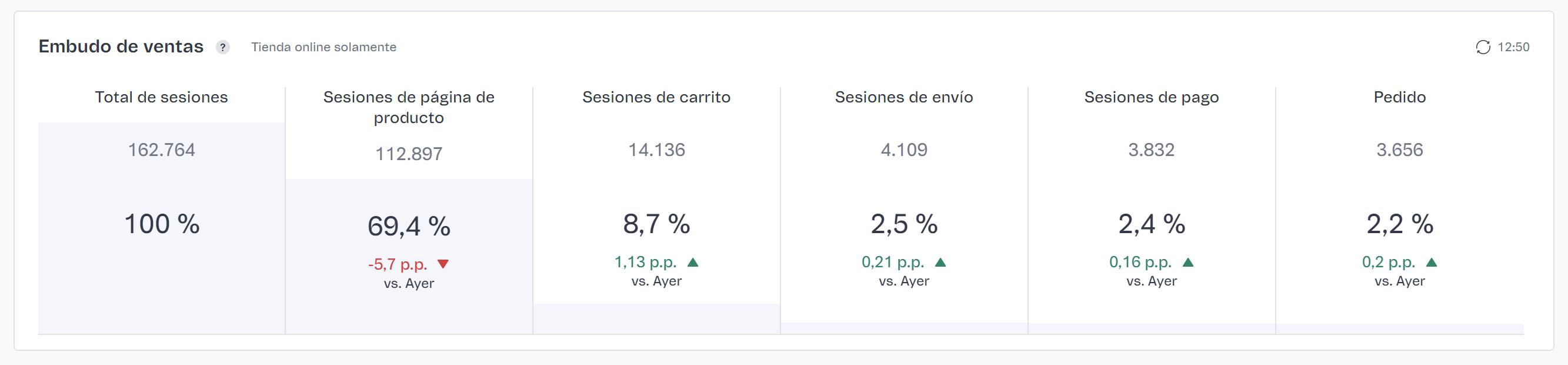 | Con datos de navegación parciales | Pedidos realizados Pedidos cancelados Embudo de ventas Sesiones |