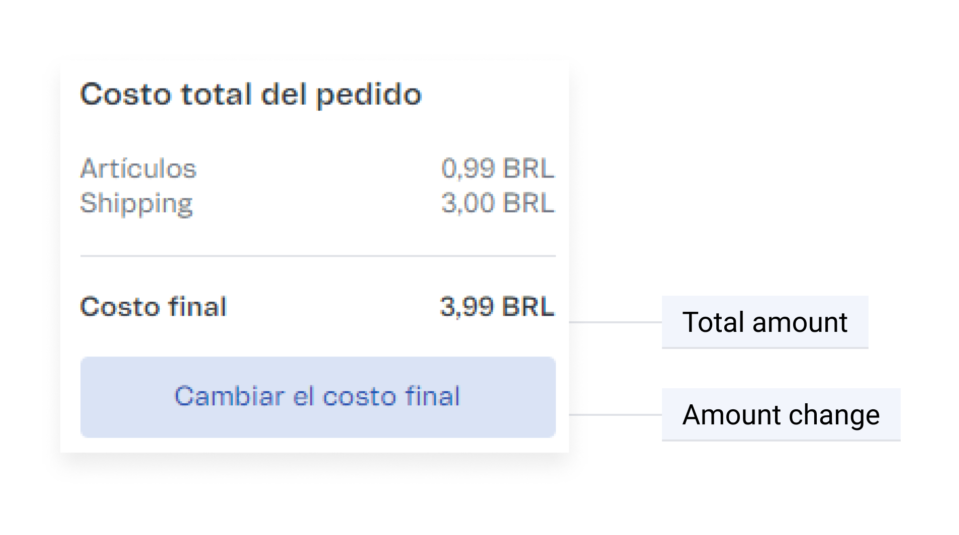 - En la página Detalles del pedido, ve a la sección Costo total del pedido.