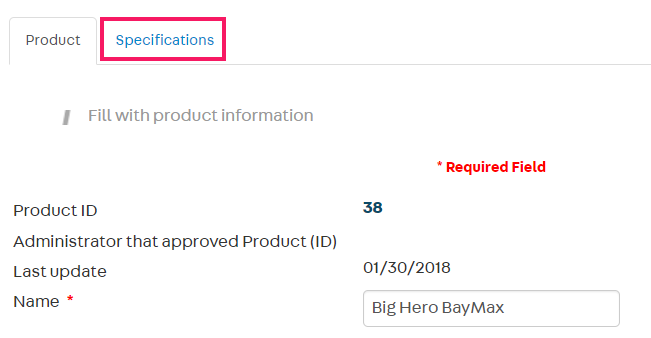 • If the product contains specifications, check the Specifications tab to see if they are filled in.