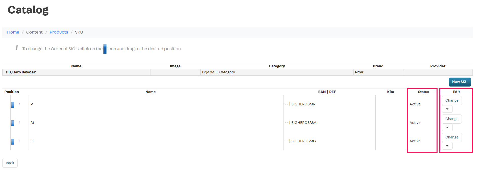 4. In the Status column, check if the indicated situation is Active. If the SKUs are active, go to step 7.
