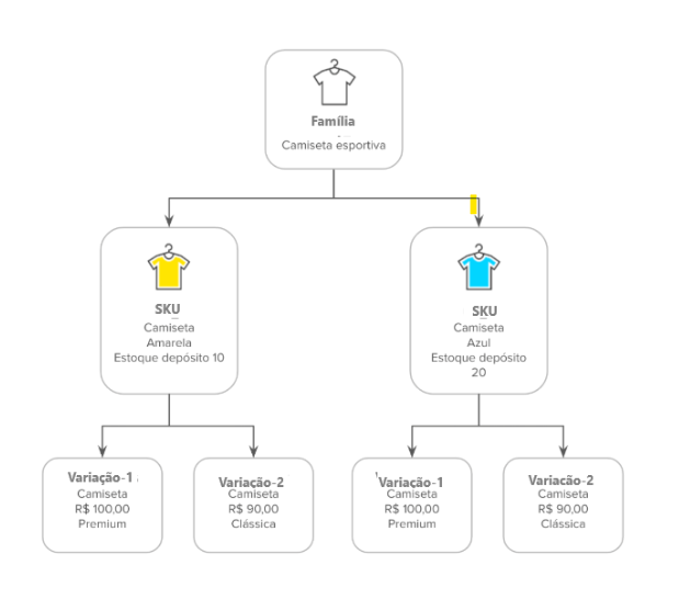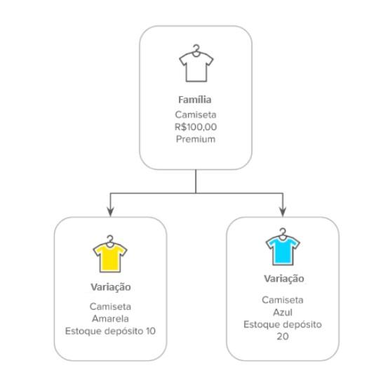 Ao criar um novo anúncio, o Mercado Livre utilizará os atributos do SKU como tamanho e cor para agrupá-los em uma Família.