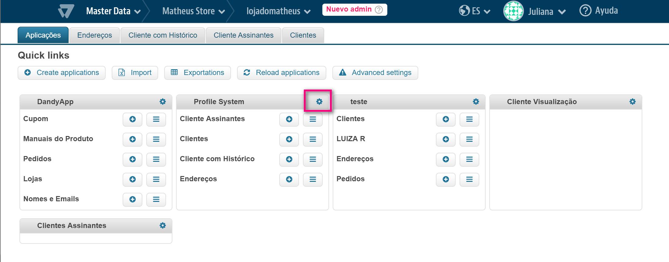 - Clique no ícone de Configurações (engrenagem) de Profile System