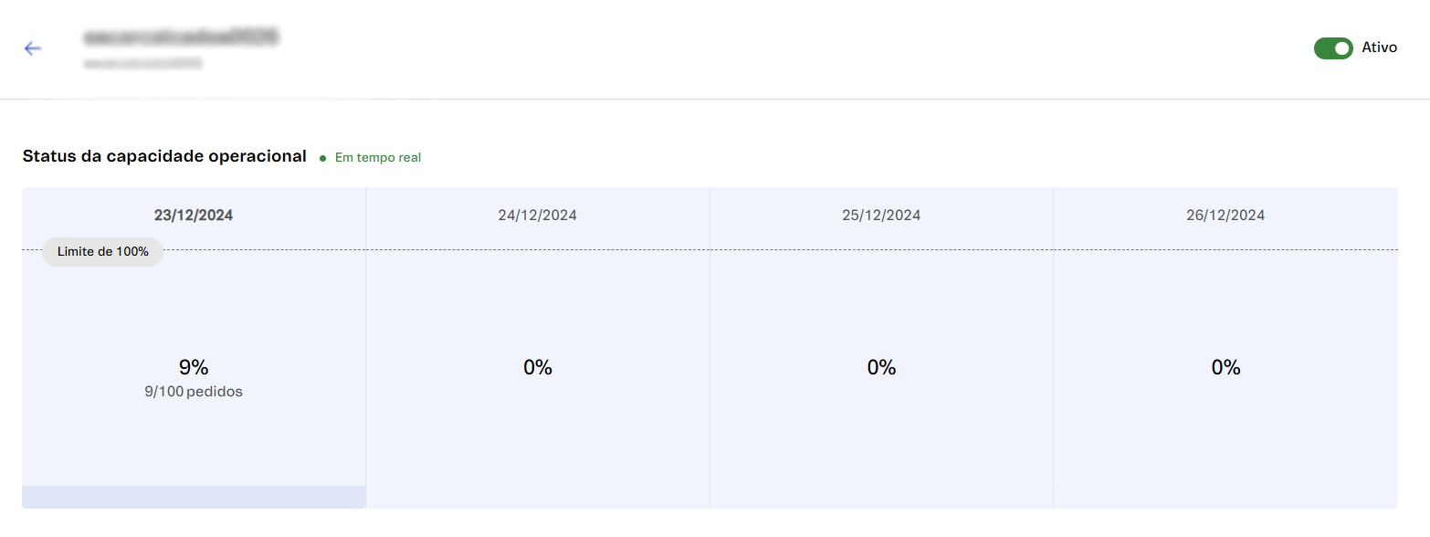 - Na página de detalhes da capacidade do seller, encontre a seção Capacidade operacional.