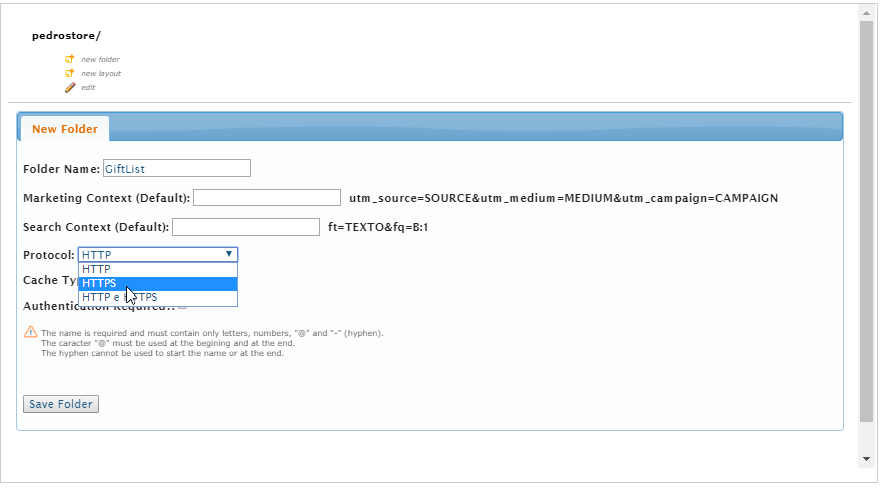 - Na caixa de seleção Protocol, selecione a opção HTTPS;
