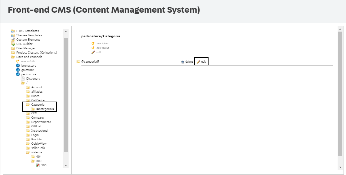 No exemplo a seguir, a pasta dinâmica @Categoria@, contida em Categoria, que deve ser também editada: